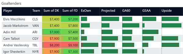 Elvis Merzlikins - CLS (DK: $7400, FD: $7200)