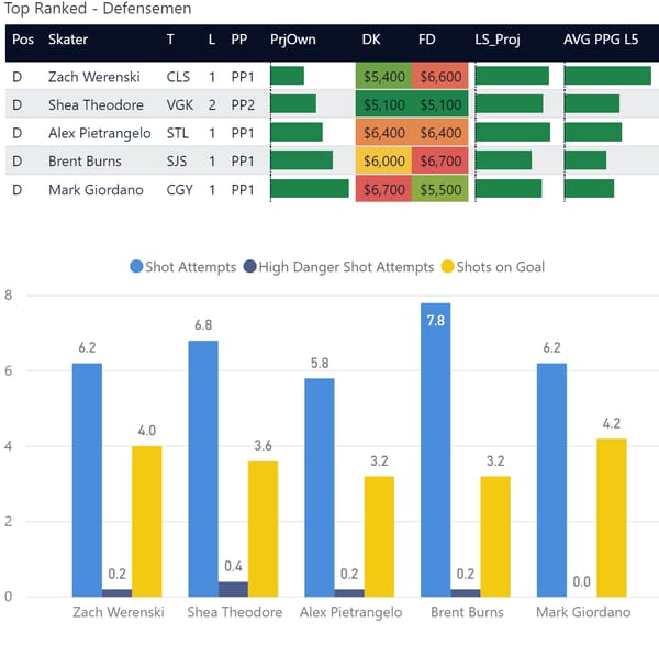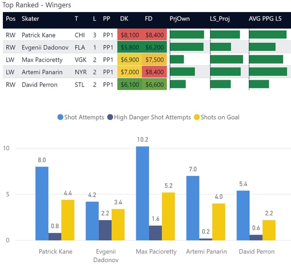 If you take anything away from this, keep in mind that hockey is a high-variance sport. The top ranked player in each category could be a great play or be a dud tonight. Going all in on any player probably isn't a great move.