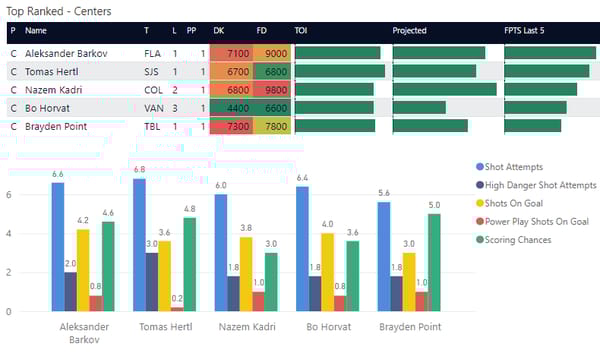 If you take anything away from this, keep in mind that hockey is a high-variance sport. The top-ranked player in each category could be a great play or be a dud tonight. Going all-in on any player probably isn't a great move.