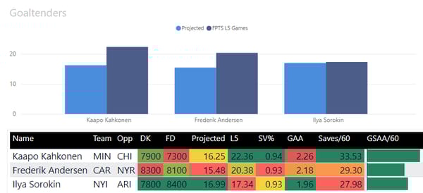 My preference is to correlate goalie with one of my stacks, but my favorite tonight is: