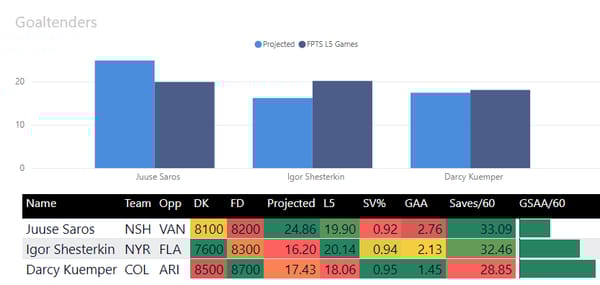 My preference is to correlate goalie with one of my stacks, but my favorite tonight is: