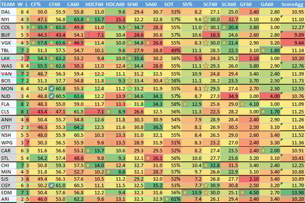 ScoreAgg: Summed numbers of a teams GF60, xGF60 and the opponent's GA60 and xGA60.