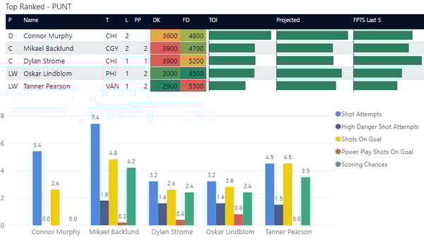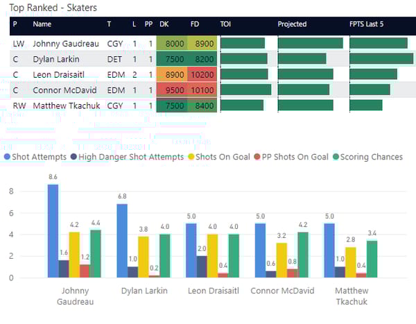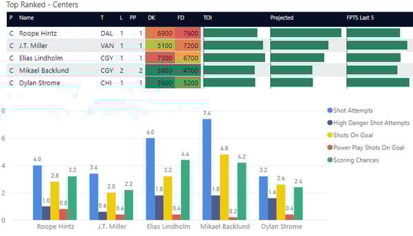 If you take anything away from this, keep in mind that hockey is a high-variance sport. The top-ranked player in each category could be a great play or be a dud tonight. Going all-in on any player probably isn't a great move.