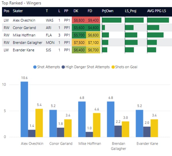 If you take anything away from this, keep in mind that hockey is a high-variance sport. The top ranked player in each category could be a great play or be a dud tonight. Going all in on any player probably isn't a great move.
