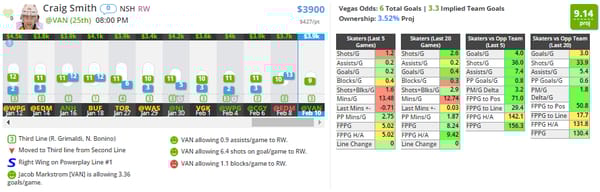 Craig Smith: NSH - D (DK: $3900, FD: $4500)