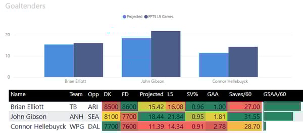 My preference is to correlate goalie with one of my stacks, but my favorite tonight is: