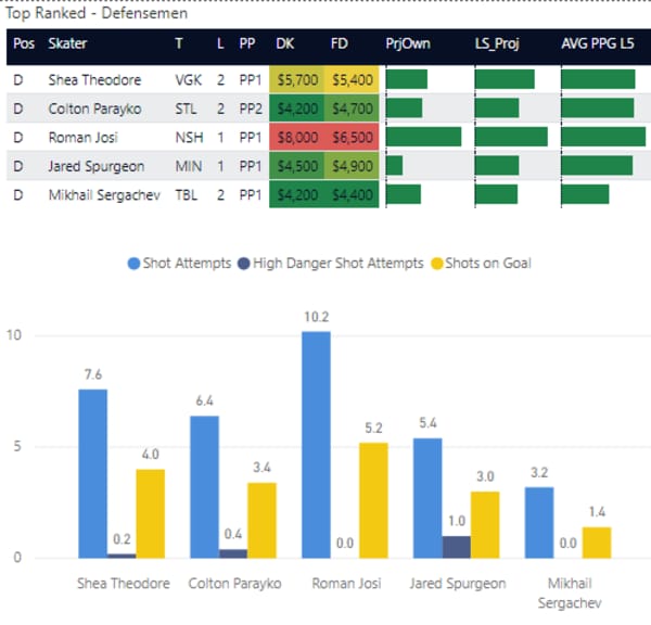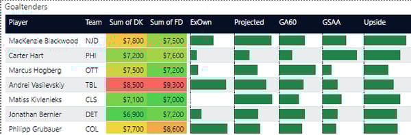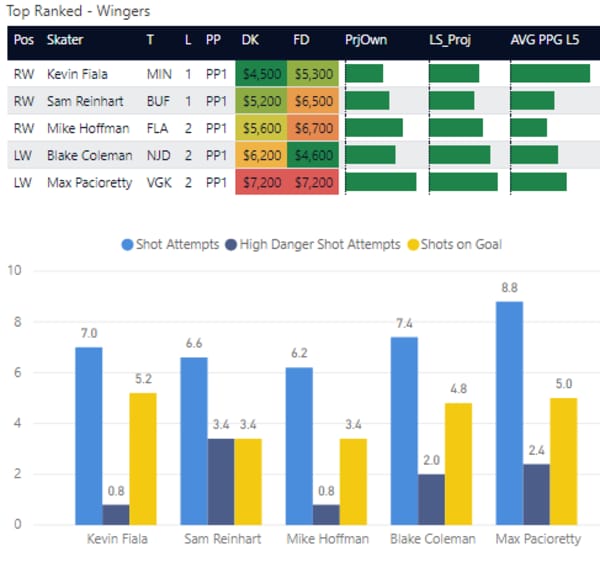 If you take anything away from this, keep in mind that hockey is a high-variance sport. The top ranked player in each category could be a great play or be a dud tonight. Going all in on any player probably isn't a great move.