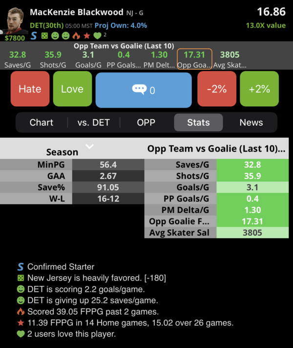 Got NHL DFS questions or want to see something covered in this newsletter? Hit me up in LineStar Chat.