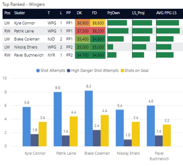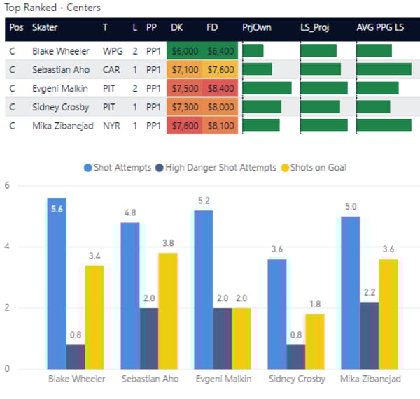 If you take anything away from this, keep in mind that hockey is a high-variance sport. The top ranked player in each category could be a great play or be a dud tonight. Going all in on any player probably isn't a great move.