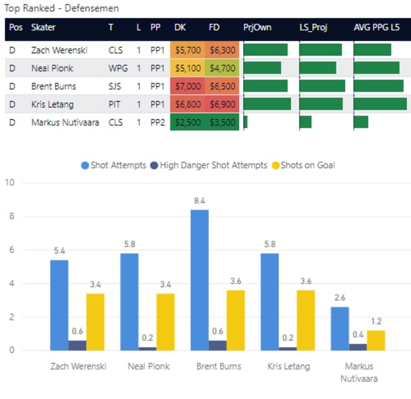 The first thing to remember is that NHL DFS is a lot like MLB DFS. Top-tier players can, and will, get a zero or a handful of points while some scrub will go off and get 30 points. I've said this before, NHL projections mean almost nothing. I don't care if Brent Burns is projected at 5 points, 15 points, or 25 points (because honestly, his range of outcomes is 5-25 points any given night).