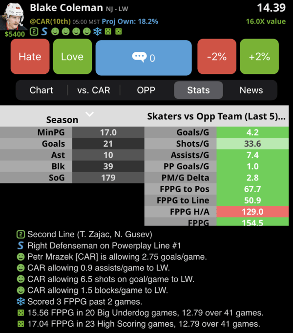 Got NHL DFS questions or want to see something covered in this newsletter? Hit me up in LineStar Chat.