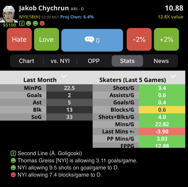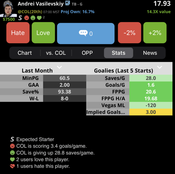 Got NHL DFS questions or want to see something covered in this newsletter? Hit me up in LineStar Chat.