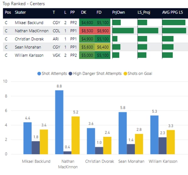 If you take anything away from this, keep in mind that hockey is a high-variance sport. The top ranked player in each category could be a great play or be a dud tonight. Going all in on any player probably isn't a great move.