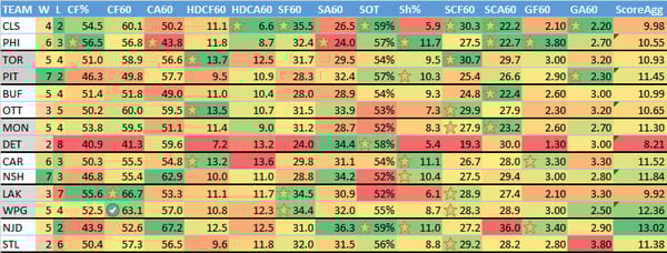 ScoreAgg: Summed numbers of a teams GF60, xGF60 and the opponent's GA60 and xGA60.