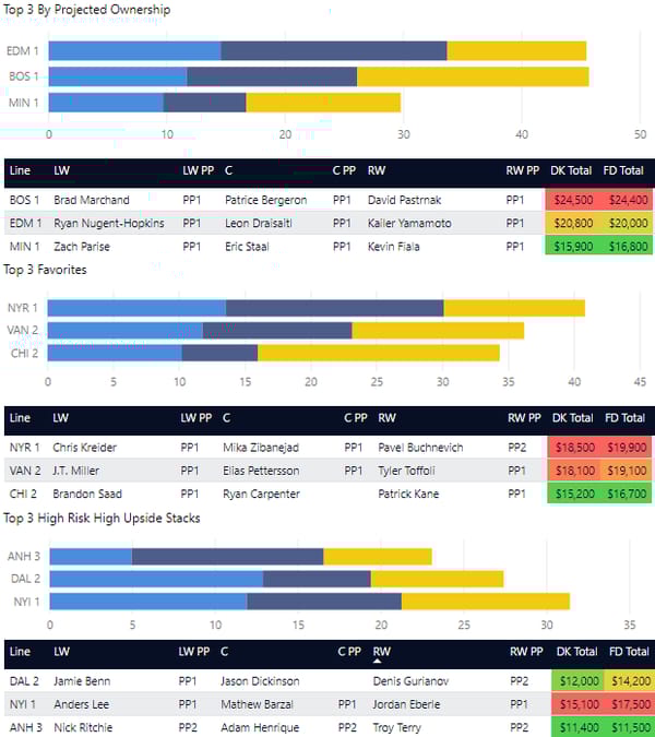 If you take anything away from this, keep in mind that hockey is a high-variance sport. The top ranked player in each category could be a great play or be a dud tonight. Going all in on any player probably isn't a great move.