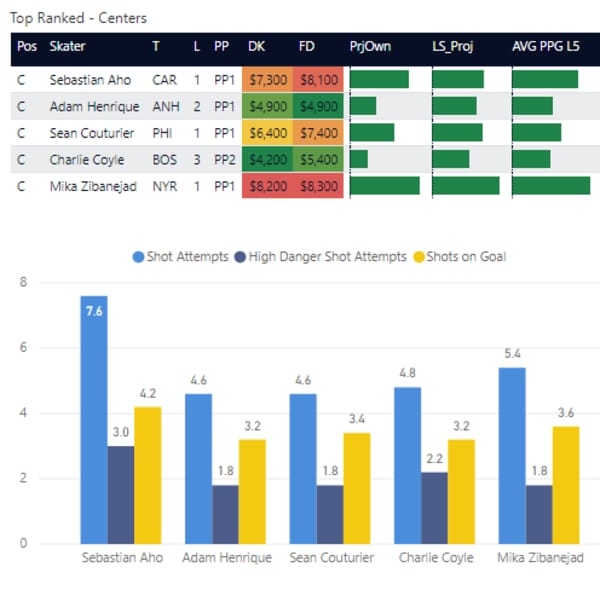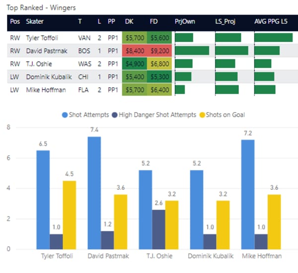 If you take anything away from this, keep in mind that hockey is a high-variance sport. The top ranked player in each category could be a great play or be a dud tonight. Going all in on any player probably isn't a great move.