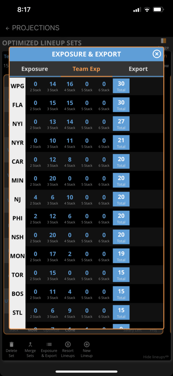 For example, the exposure button will show me what stacks I'm getting and how much. For me, this can be huge as it gives me an indication of where other people might be going with their lineups. I usually try this with different lineup settings and stack times to give me a broad idea of what's coming back.