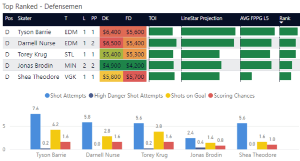 I love both Barrie and Nurse tonight, but leaning Barrie for the PP1 correlation. This is a rare case, too, where a double-D stack makes sense.