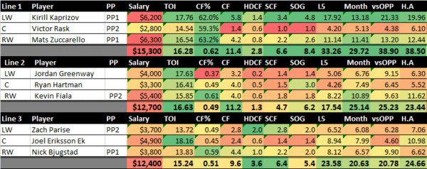 For me, all three Minnesota lines are in play for tonight, but I prefer the top line of Kaprizov, Rask, and Zuccarello.