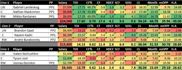 You don't need me to tell you any more about Colorado players. Instead, I'm looking at Yanni Gourde because he's been playing well lately and is cheap enough to pair with a MacKinnon or Barkov to make a solid lineup.