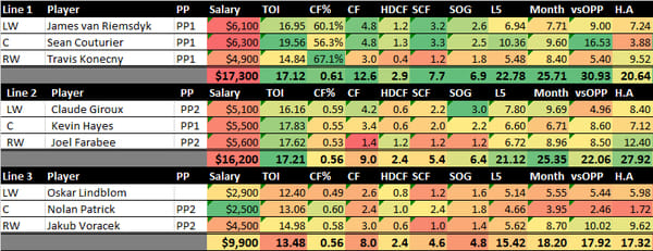 Based on this, my favorite teams to target on this slate are Colorado, Vegas, Philly, Edmonton, and Pittsburgh