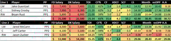 Pittsburgh has the best matchup on the slate and the top two lines rank highest for me tonight.