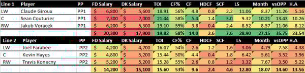 Hughes is cheap for a top-line, top power play unit center with a good matchup against a Philly team that is allowing 3.2 goals a game.