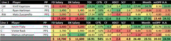 Vegas has the best matchup tonight, so it should be no surprise that they're the top ranked stacks of the night. VGK2 is my favorite.