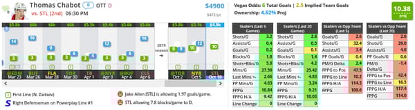 Thomas Chabot - OTT (DK: $4900, FD: $5400)