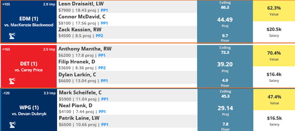 If you take anything away from this, keep in mind that hockey is a high-variance sport. The top ranked player in each category could be a great play or be a dud tonight. Going all in on any player probably isn't a great move.