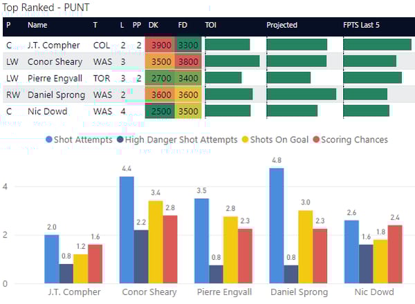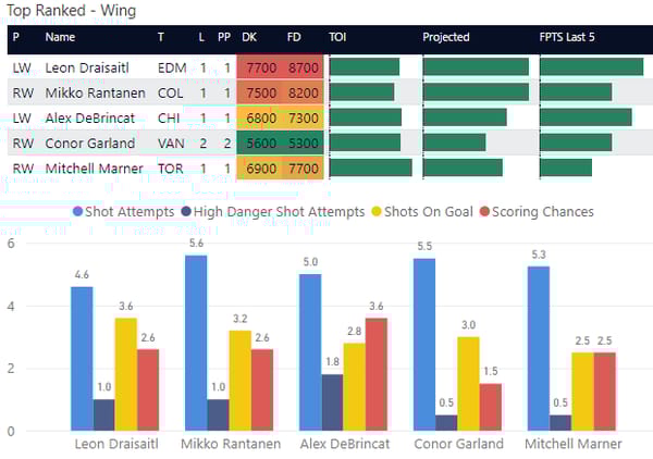 If you take anything away from this, keep in mind that hockey is a high-variance sport. The top-ranked player in each category could be a great play or be a dud tonight. Going all-in on any player probably isn't a great move.