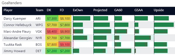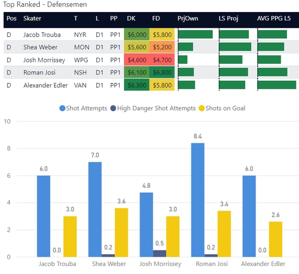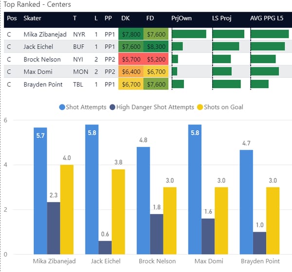 If you take anything away from this, keep in mind that hockey is a high-variance sport. The top ranked player in each category could be a great play or be a dud tonight. Going all in on any player probably isn't a great move.
