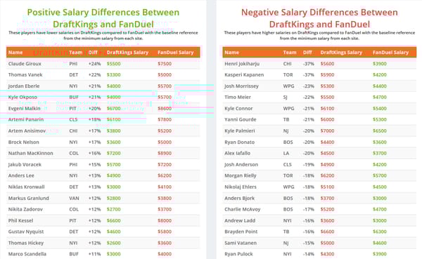 I use this tool more if I'm playing on two sites, but it's also useful to see possible value. For example, Evgeni Malkin is $6700 on DraftKings tonight, but $8600 on FanDuel. This means that I might be more likely to play Malkin on DraftKings but less interested on FanDuel.