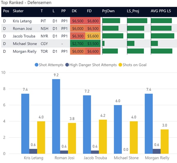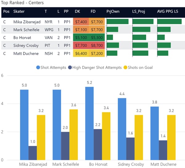 If you take anything away from this, keep in mind that hockey is a high-variance sport. The top ranked player in each category could be a great play or be a dud tonight. Going all in on any player probably isn't a great move.