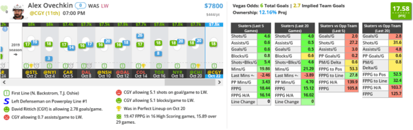 If you're wondering what led someone to stack the top lines for St Louis and Columbus, I want to show you this. If you sort by "Skaters vs Opp Team (Last 5)" and "FPPG to Line", you'll see that those two lines are at the top and all but one of those players exceeded expectations.