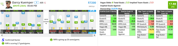 Darcy Kuemper - ARI (DK: $7200, FD: $8100)
