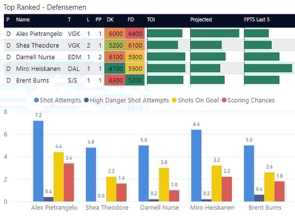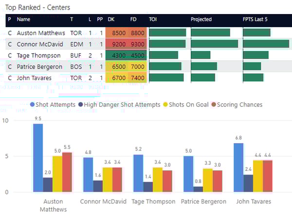 If you take anything away from this, keep in mind that hockey is a high-variance sport. The top-ranked player in each category could be a great play or be a dud tonight. Going all-in on any player probably isn't a great move.