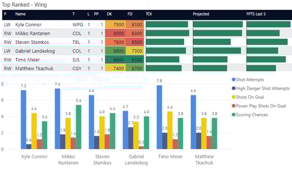 If you take anything away from this, keep in mind that hockey is a high-variance sport. The top-ranked player in each category could be a great play or be a dud tonight. Going all-in on any player probably isn't a great move.