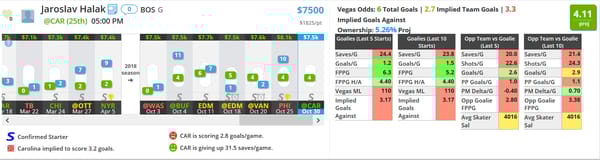 Jaroslav Halak, BOS (@CAR) (DK: $7.5K, FD: $8K)