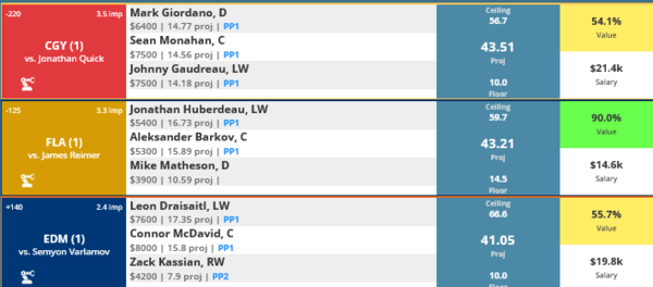 If you take anything away from this, keep in mind that hockey is a high-variance sport. The top ranked player in each category could be a great play or be a dud tonight. Going all in on any player probably isn't a great move.