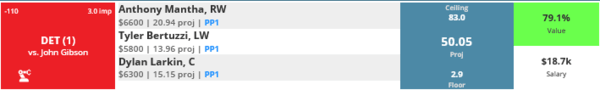 This is my low ownership, high risk, and high upside stack. I feel gross putting Detroit here, but I think a lot of people will be on Gibson tonight. Detroit's been a bit of a surprise their first couple of games and I want to see how long it continues.