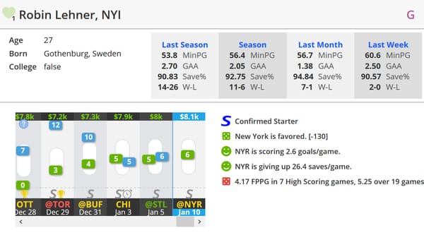 Written by LineStar Fantasy Life Coach @ZeroInDenver. Got NHL DFS questions or want to see something covered in this newsletter? Hit me up in LineStar Chat.