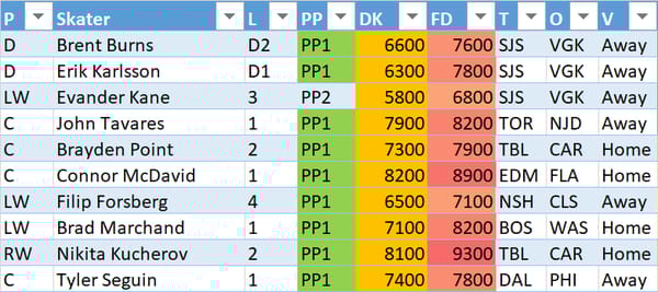 Here's where it gets interesting, 3 Sharks in the top 10. However, Vegas is only allowing 1.89 goals a game over their last 10 games. Perfect shot for tournaments. It goes back to the best thing I learned in DFS: "What's supposed to happen usually don't."