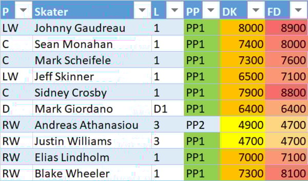 Line stacking is a common strategy in GPP. You’ll see a lot of winning lineups where players are stacked from the same forward lines or power play lines.