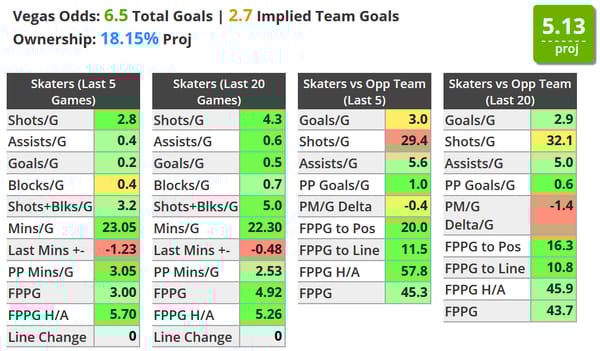 He's got a solid 63 CF% with 4.4 shot attempts and 34 shots on net over his last 5 games and is another solid pivot from a top line.
