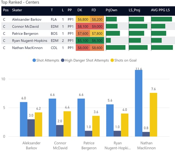 If you take anything away from this, keep in mind that hockey is a high-variance sport. The top ranked player in each category could be a great play or be a dud tonight. Going all in on any player probably isn't a great move.