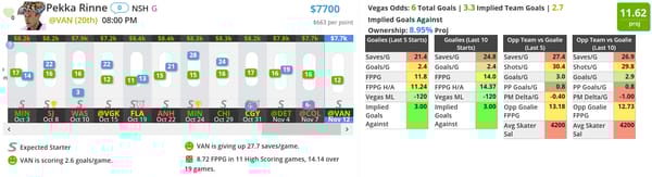 Pekka Rinne - NSH (DK: $7700, FD: $8600)