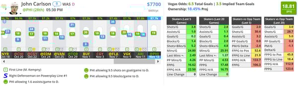 John Carlson - WAS (DK: $7700, FD: $7200)