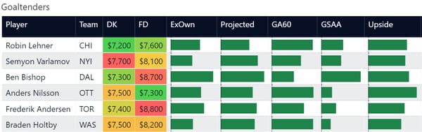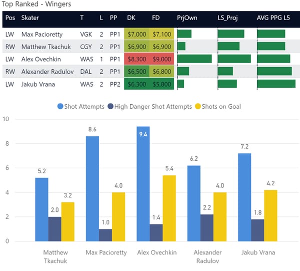 If you take anything away from this, keep in mind that hockey is a high-variance sport. The top ranked player in each category could be a great play or be a dud tonight. Going all in on any player probably isn't a great move.