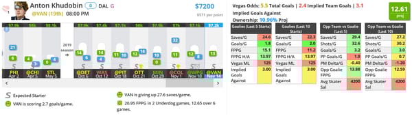 Anton Khudobin - DAL (DK: $7200, FD: $7500)